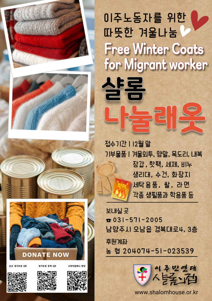 🧡 이주노동자를 위한 겨울나눔 – ‘샬롬 나눌래옷’ 시작합니다!