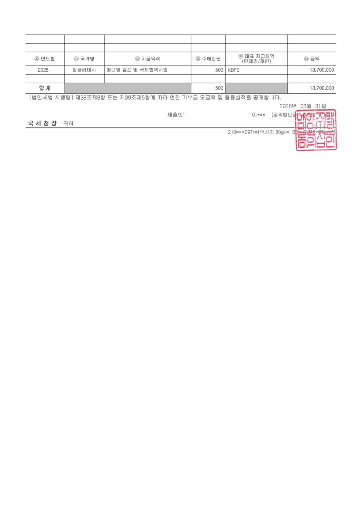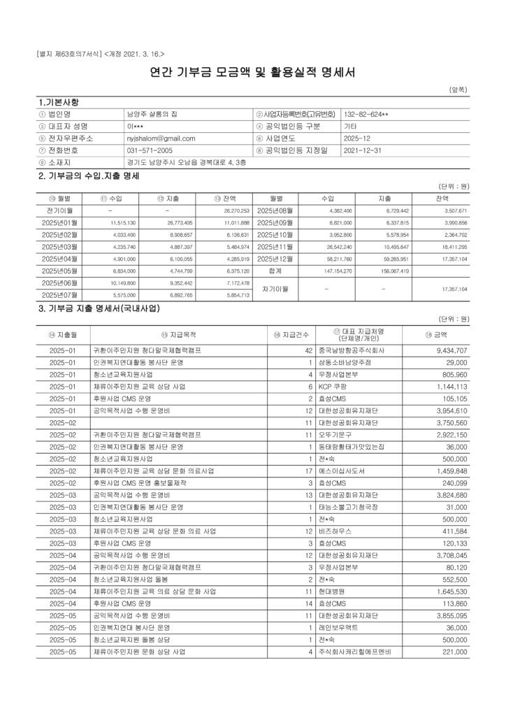 2025년 연간 기부금 모금액 및 활용실적 명세서 공개