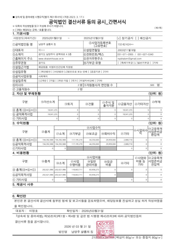2025년 공익법인 결산서류 등의 공시