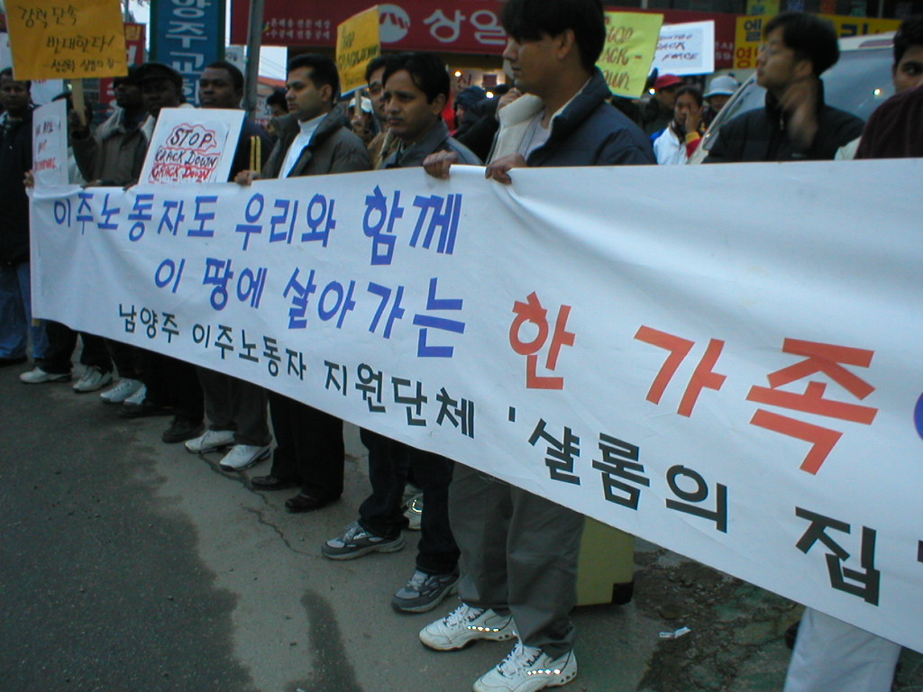 비정규직 노동자들의 열악한 처우와 노동기본권 쟁취를 위한 '전국 비정규직 노동자 대회'에서 강제 추방 중단 및 미등록 이주노동자 전면 합법화를 요구하며 한국 노동자들과 연대
