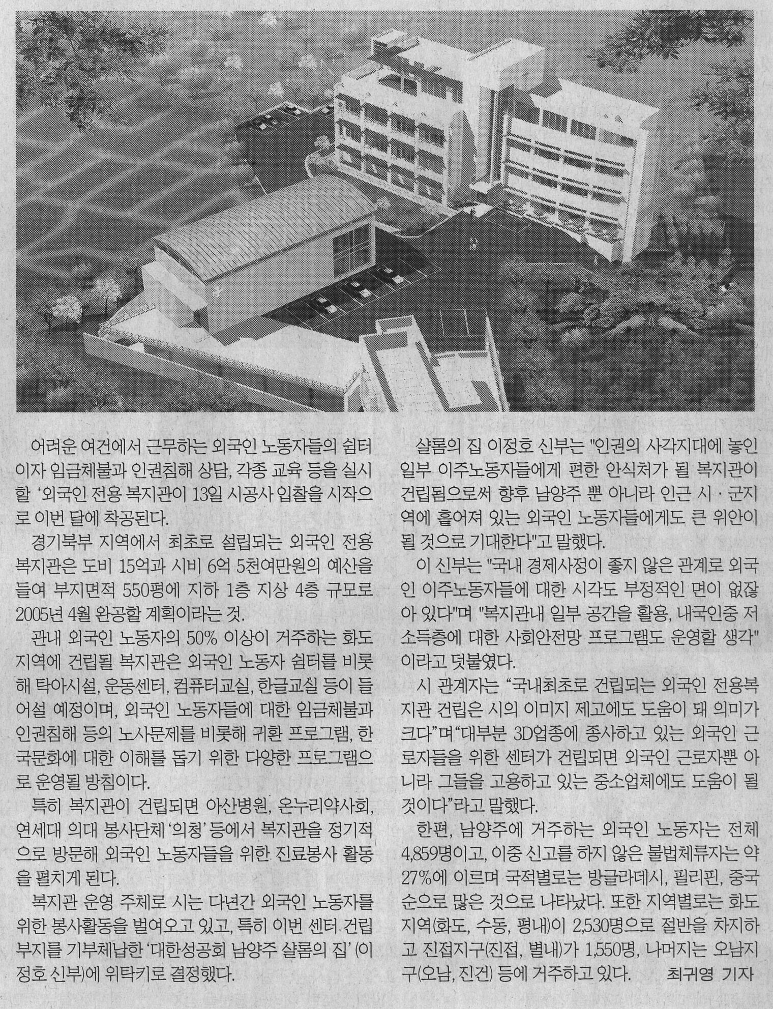 2005. 국내 최초 이주노동자 전용복지관 남양주에 건립됨